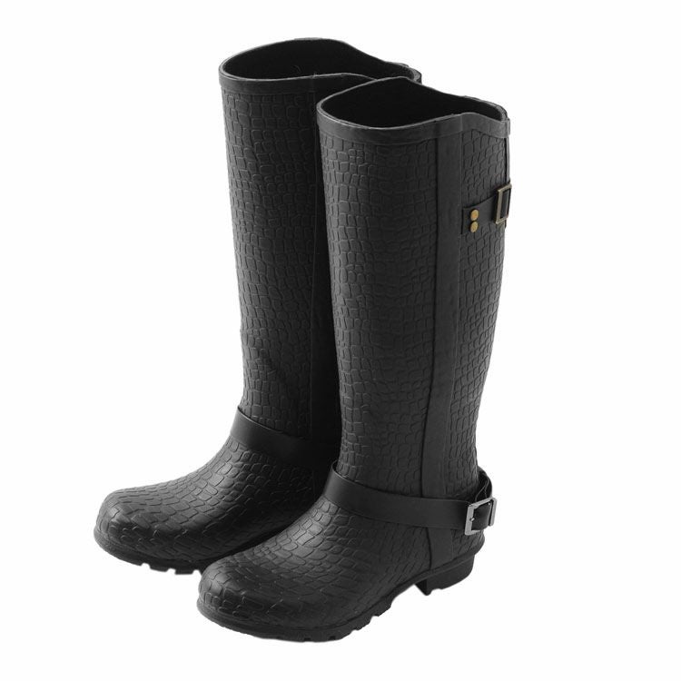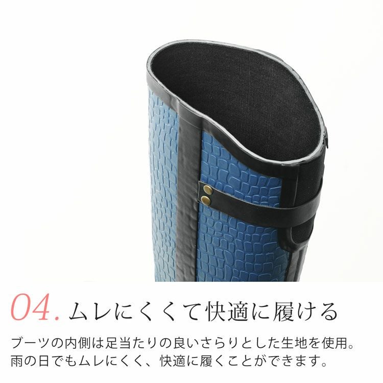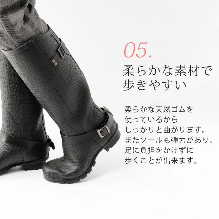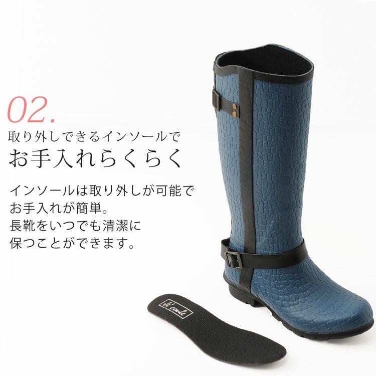 レインブーツ レディース 完全防水 ロング クロコダイル 型押し レインシューズ je'coule 長靴 柔らかい 滑りにくい 雨靴 防水 キャンプ 梅雨 台風 S/M/L/LL ネイビー/ブラック 雨の日 エンジニアブーツ エンジニア ラバー ギフト プレゼント