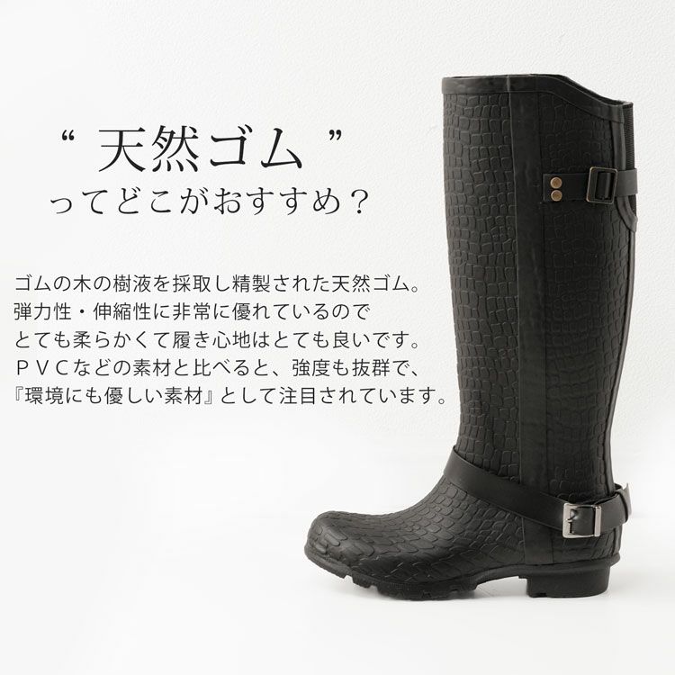 天然ゴムを使った高さ約39cmのロングレインブーツです。