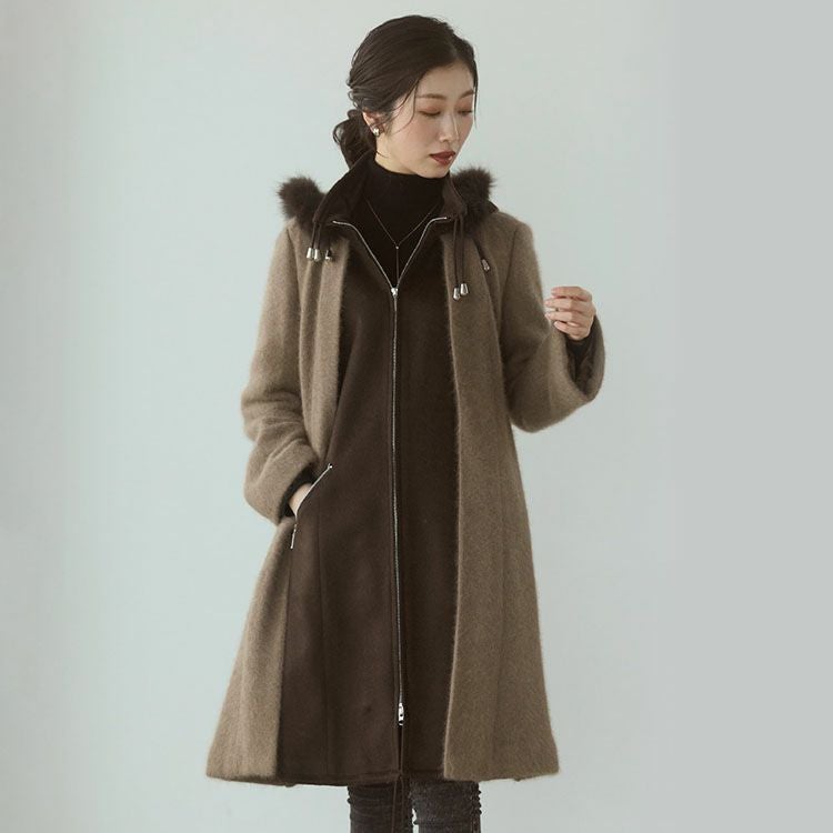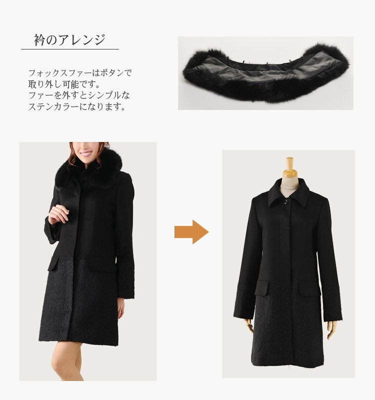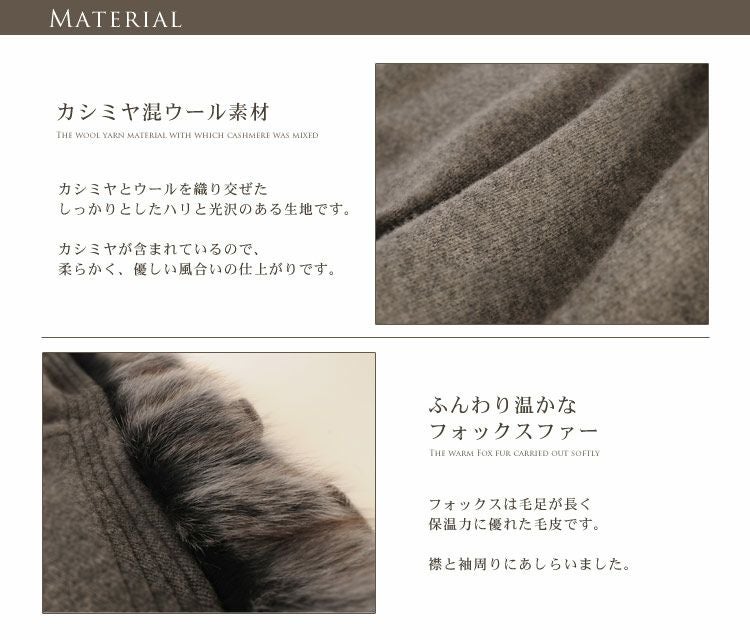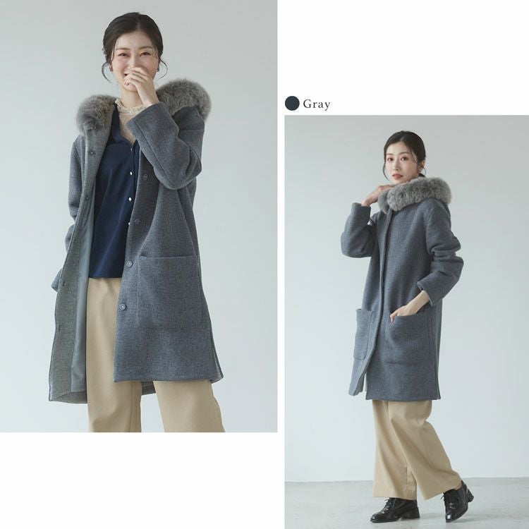 他の画像を見る 冬物限定10%OFFクーポン ミンク ブレンド ウール & カシミヤ 100% コート フォックスファートリミングフード付き 7F ¥ 82,500 税込 (0件) お気に入りに登録する