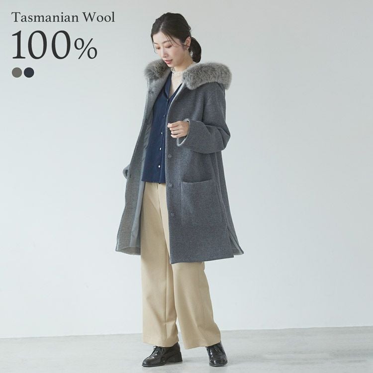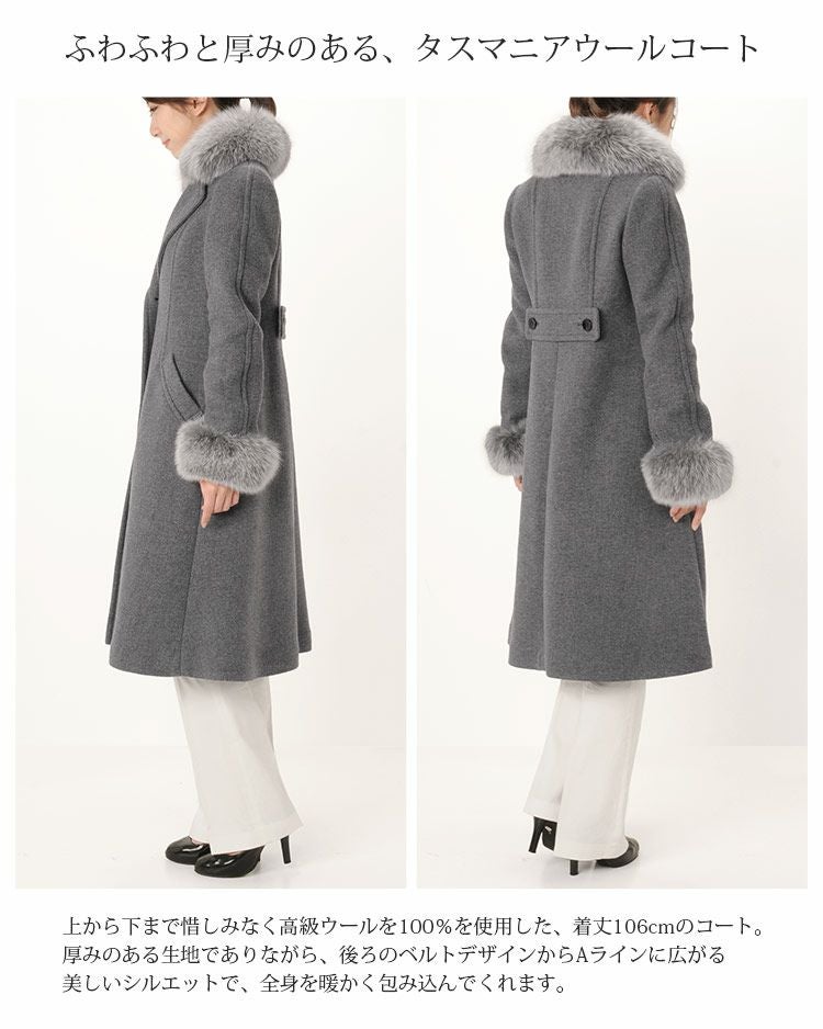 他の画像を見る 冬物限定10%OFFクーポン ロングコート タスマニアリバーウール フォックスファー付き テーラーカラー 着丈106cm レディース 日本製 レッド/モカ/グレー 9号/11号 6F ¥ 77,000 税込 (0件) お気に入りに登録する