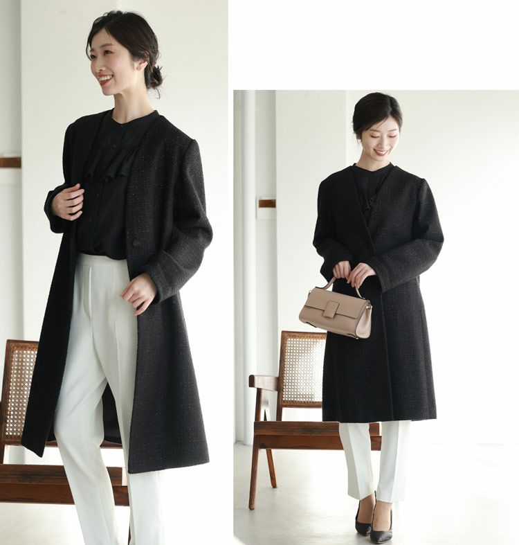 他の画像を見る クーポンで10%OFF 卒園式 卒業式におすすめ ノーカラー コート レディース Vネック J-white ブラック ラメ ツイード 生地 秋 冬 6F ¥ 19,800 税込 (0件) お気に入りに登録する