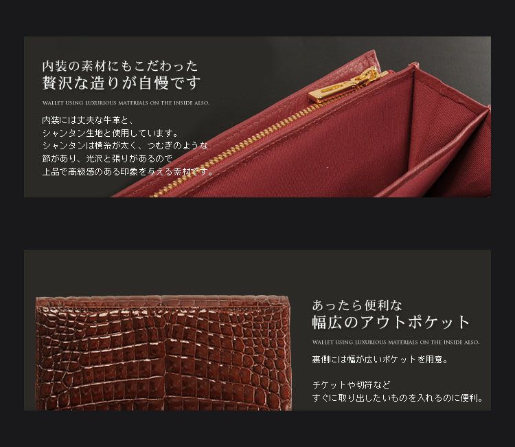 他の画像を見る exotic leather クロコダイル 長財布 シャイニング加工 センター取り バイカラー レディース 『クロコダイル保証書付き』 4FA ¥ 96,800 税込 4.80 (5件) お気に入りに登録する