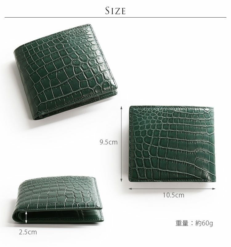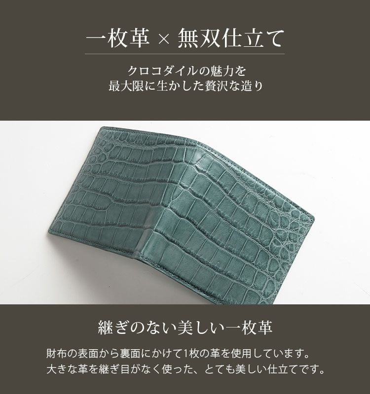 迫力のあるクロコダイルを使用しているので小さくても存在感のあるお財布です。
