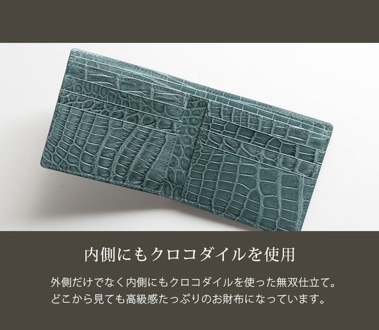 紙幣とカードをスマートに収納できるナイルクロコダイルの二つ折り財布。