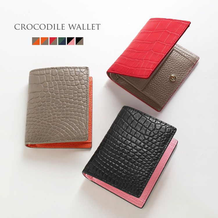 マット クロコダイル 折り財布 バイカラーデザイン レディース