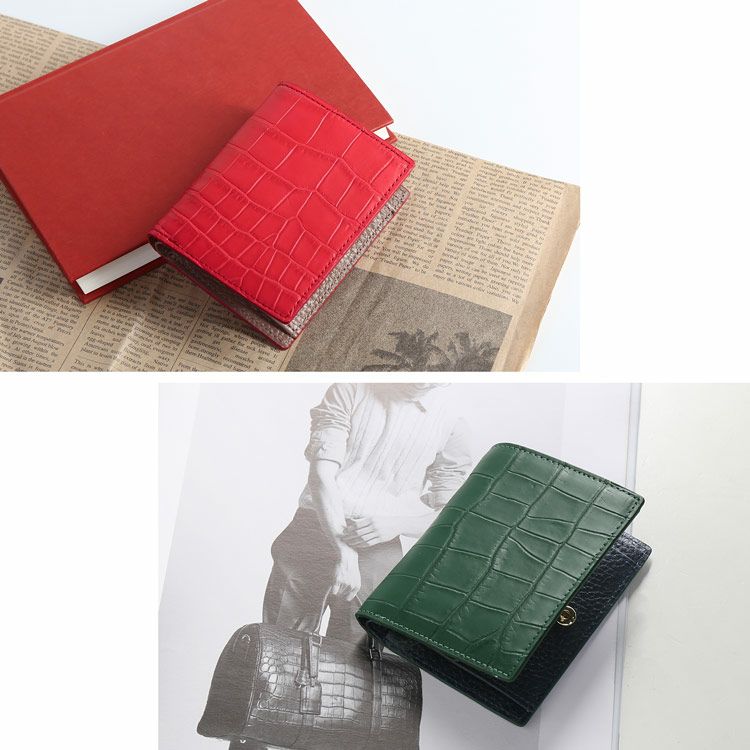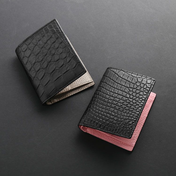 二つ折りでコンパクトに持ち運べるクロコダイルのお財布。