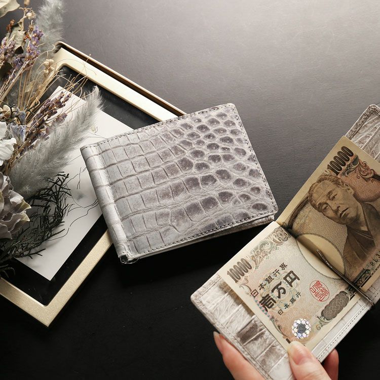※キーワード:ヒマラヤクロコダイル 白 ホワイト ナイルクロコダイル 本革 鰐革 スマート スタイリッシュ モード 薄い 薄型 軽量 二つ折り財布 折財布 折り財布 さいふ ビジネス
