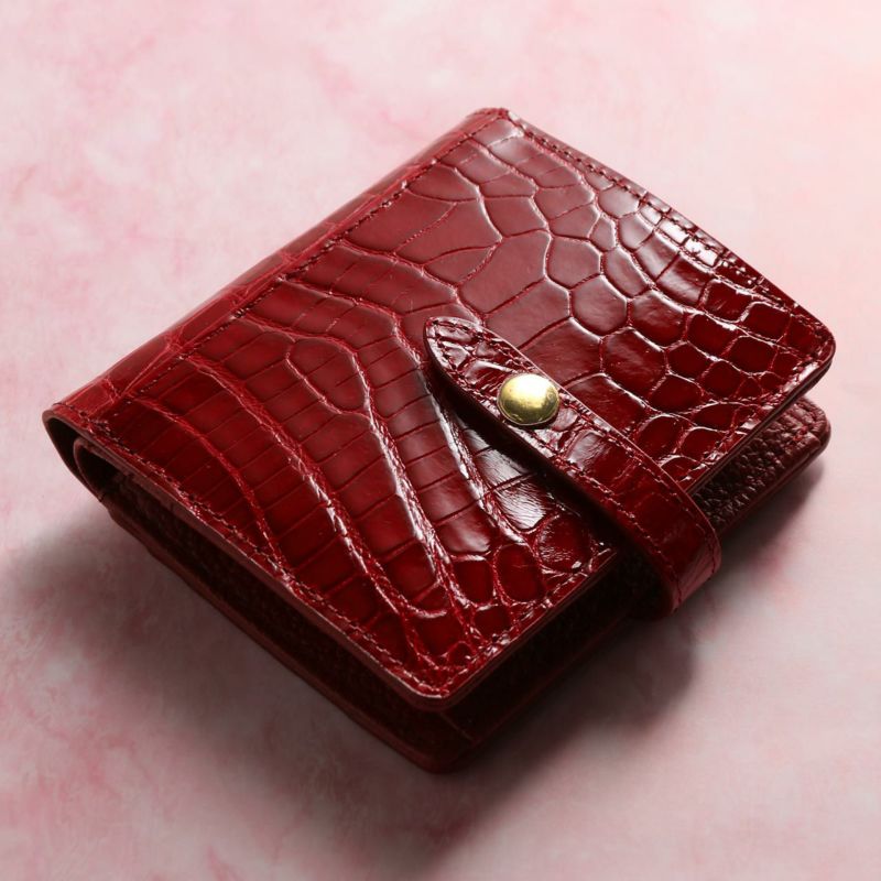 ベルトデザインがおしゃれなクロコダイルの二つ折り財布。