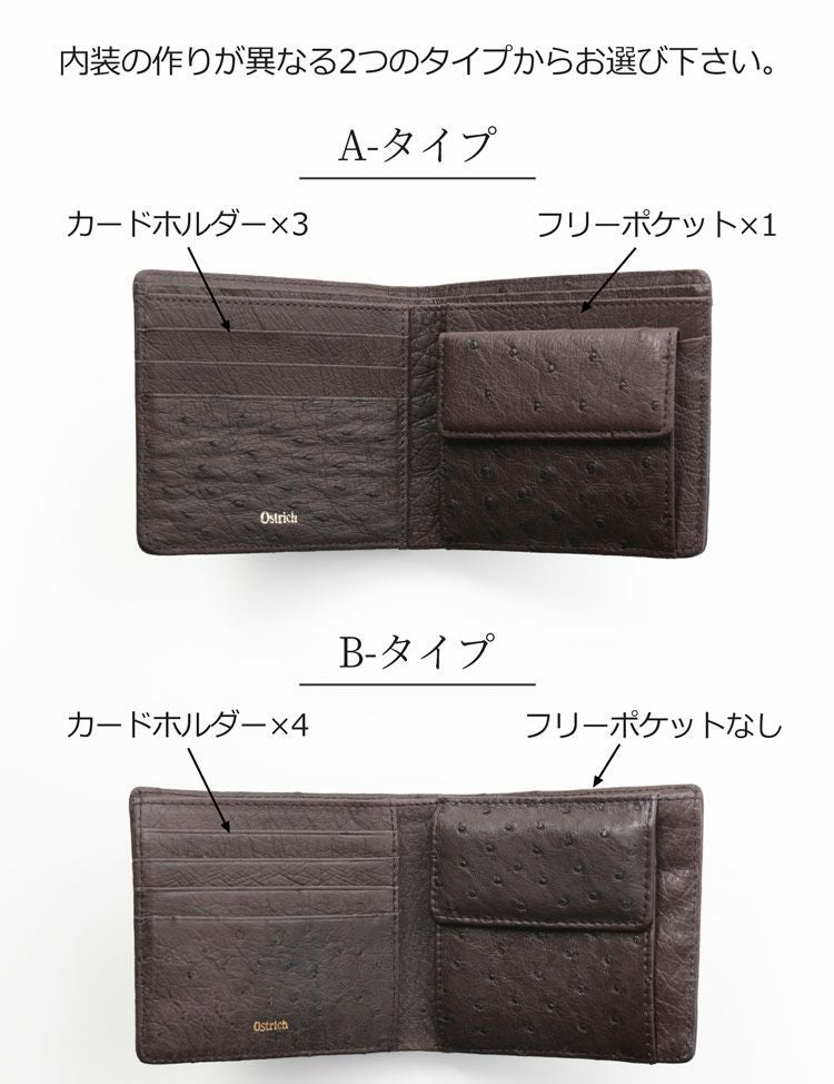 表側:オーストリッチ 内側:【Aタイプ】オーストリッチ、生地【Bタイプ】 オーストリッチ、合皮 |