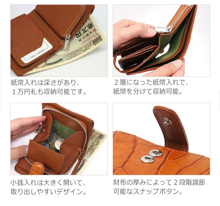 他の画像を見る exotic leather クロコダイル 二つ折り 財布 レディース 小銭入れ付き 本革 無双 マット加工 一枚革 4FA ¥ 25,300 税込 5.00 (1件) お気に入りに登録する