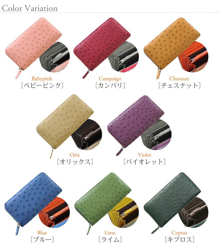 HALEINE フルポイントオーストリッチ ラウンドファスナー 長財布 4FA