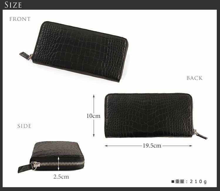 アリゲーター 長財布 マット加工 ラウンド ファスナー センター取り