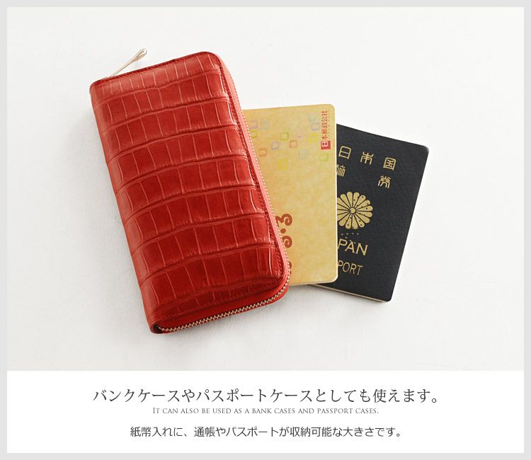 | 商品名:クロコダイル 長財布 レディース マット加工 ラウンドファスナー |
