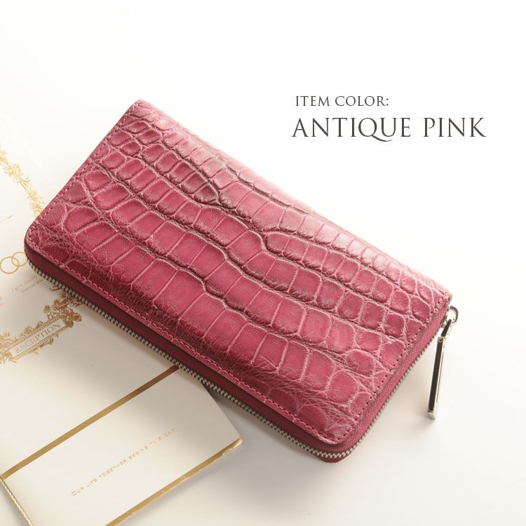 | 商品名:クロコダイル 長財布 レディース マット 加工 シルバー金具 ラウンドファスナー アンティーク風 スペイン 染め 全6色 |