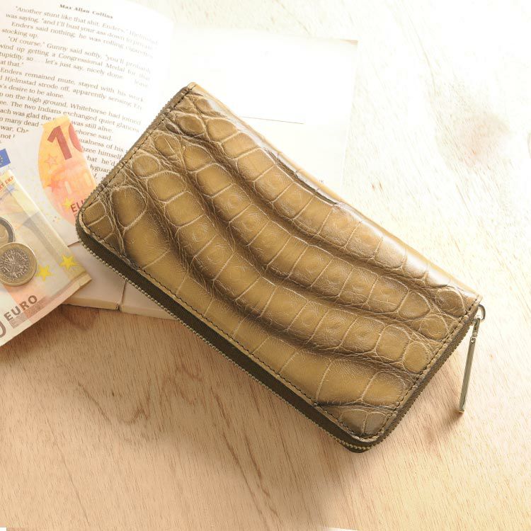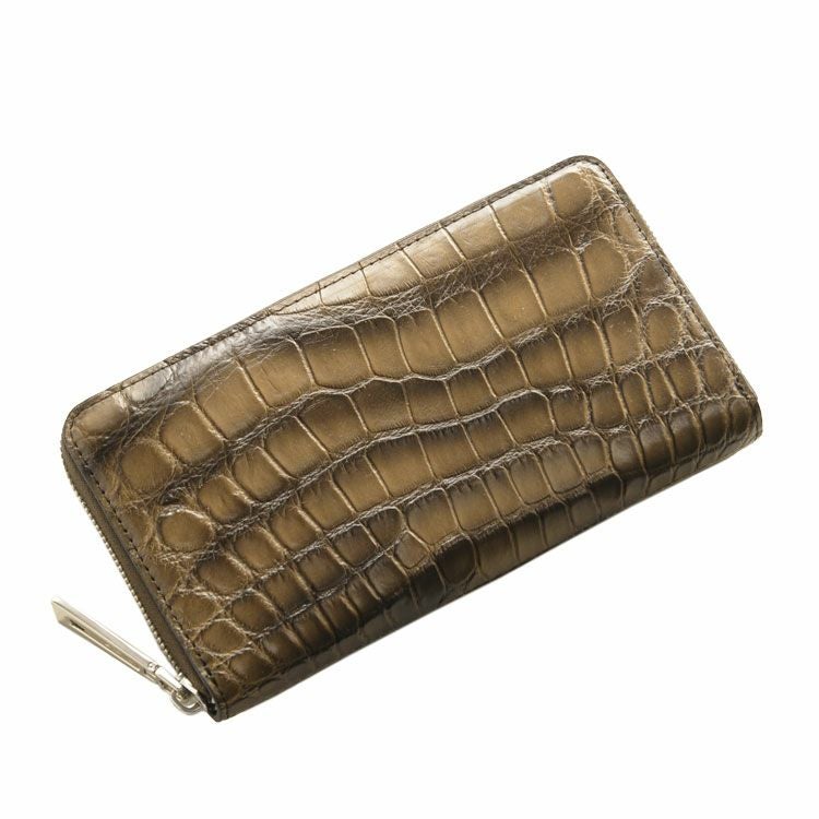 アンティーク風のカラーのクロコダイルで仕立てた長財布。