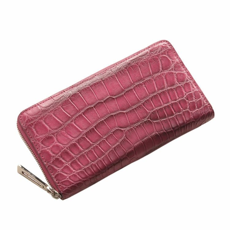 天然皮革 エキゾチックレザー クロコダイル 長財布 レディース マット加工 シルバー金具 ラウンドファスナー アンティーク風 スペイン 染め 全6色 本革 女性 プレゼント ギフト 春財布 ギフト