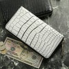 クロコダイル 長財布 レディース マット加工 ラウンドファスナー ホワイト ワイン ダークブラウン グレー ブラック 使い易い 財布 本革 鰐皮 鰐 革 女性 婦人 高級 ギフト プレゼント (06001848r)
