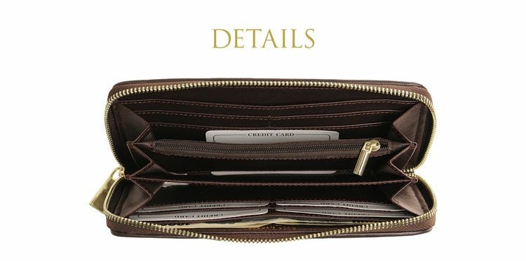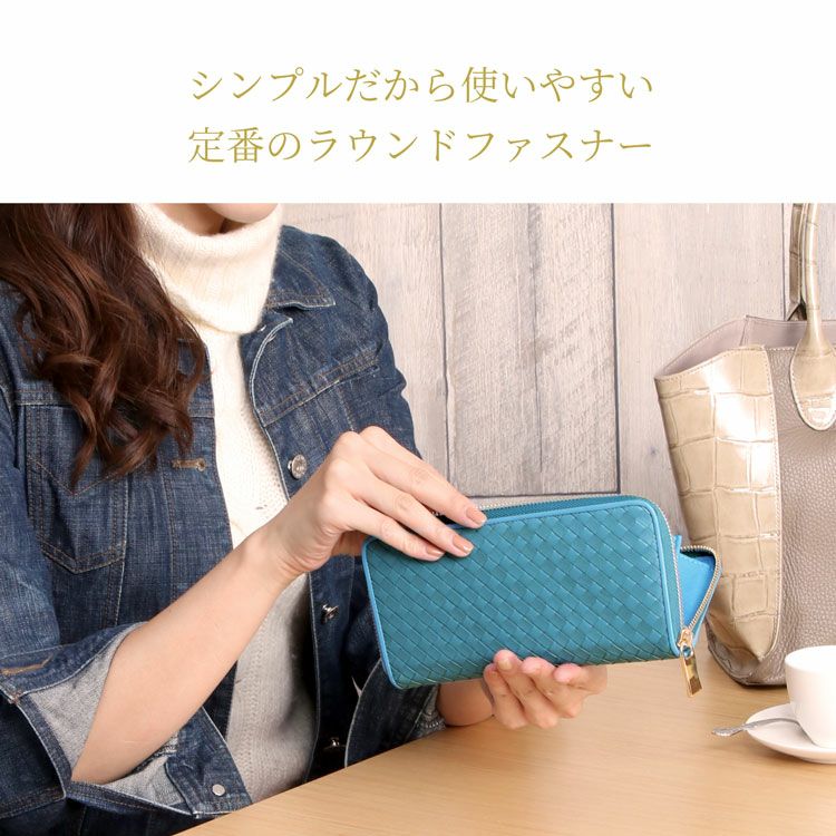 『コ』の字型に大きく開く、ラウンドファスナー式の長財布です。