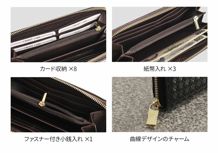 | 内側収納 | 小銭入れ×1 紙幣入れ×3 カードホルダー×8 ワイドポケット×2 |