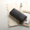 丁寧に編み込んで仕立てるイントレチャートは、一枚の革にはない立体感が魅力です。