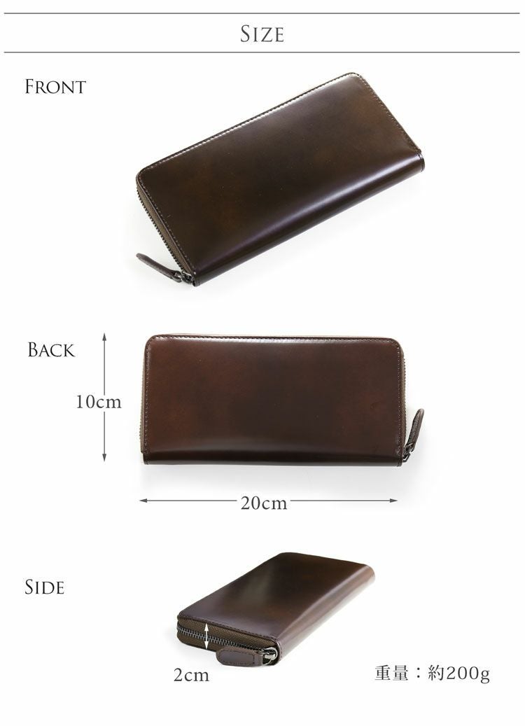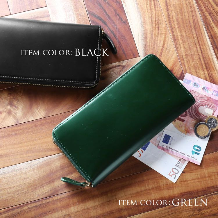 大人の品格を上げるコードバンのラウンドファスナー長財布。