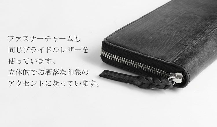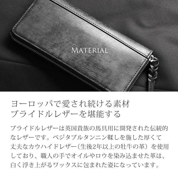 革の本場、イタリアのトスカーナで鞣したブライドルレザーの長財布。