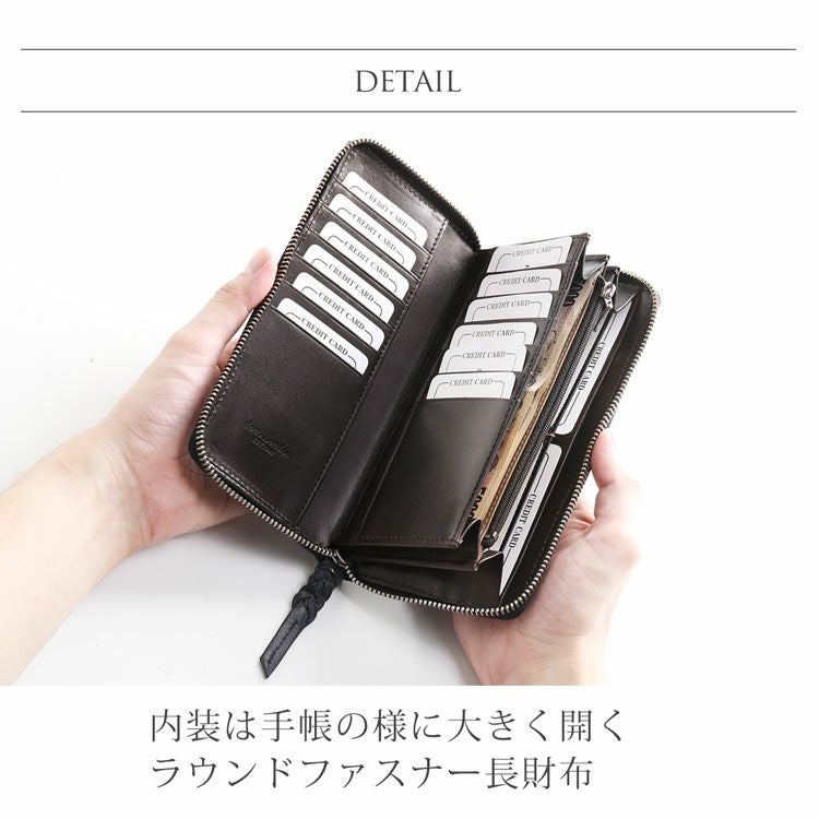 エイジングにより美しく表情を変える革を楽しみながら使える長財布です。