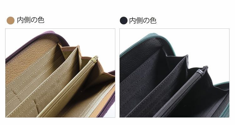 『コの字』型にぐるりとファスナーが付いたラウンドファスナー式の財布で大きく開きます。