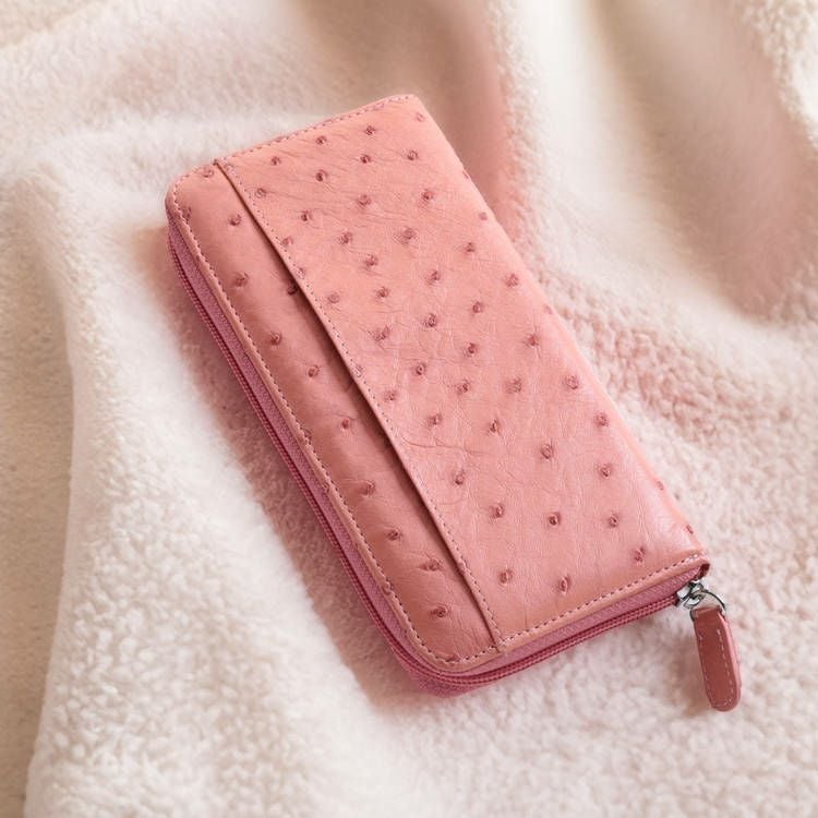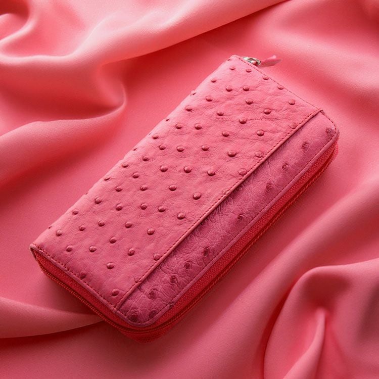 柔らかくて丈夫な本革、オーストリッチをハーフポイントで使用した長財布です。