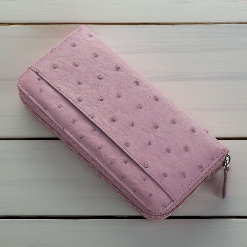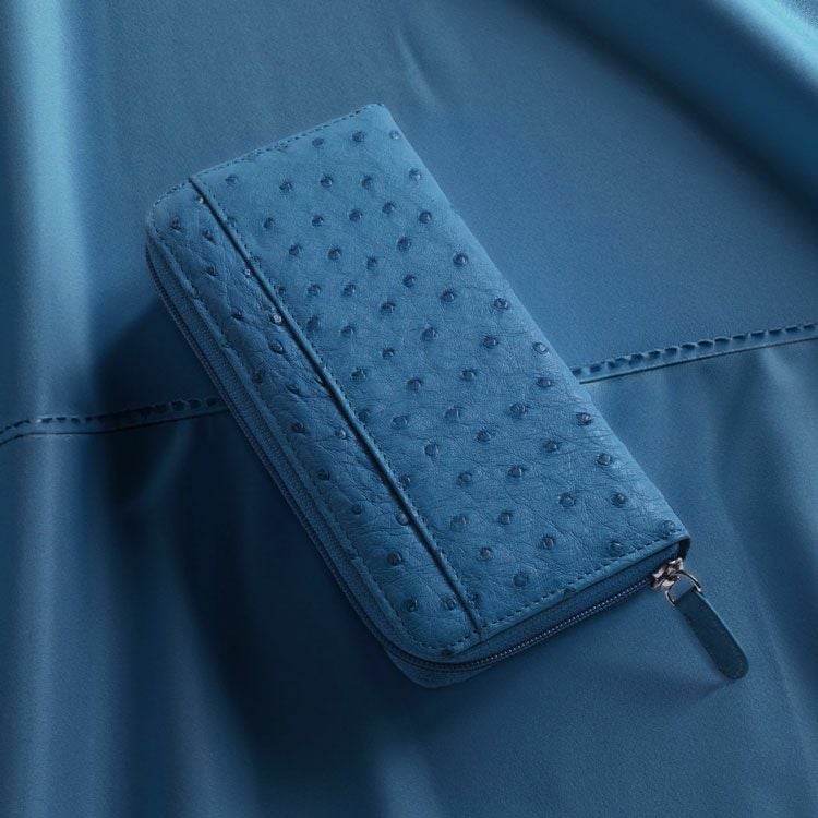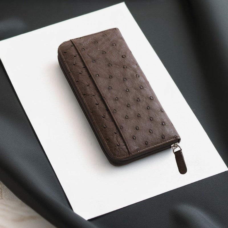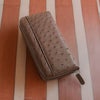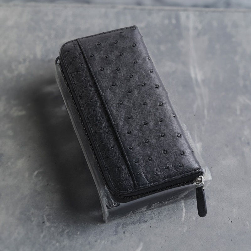 クイルマークが美しく並ぶオーストリッチを使用した、ラウンドファスナー式の長財布。
