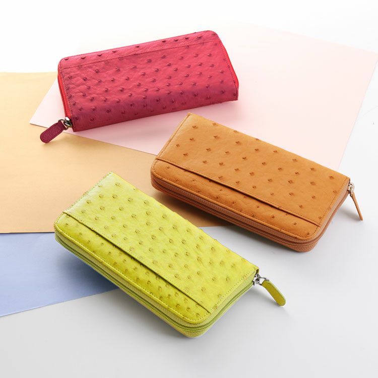 長財布 レディース オーストリッチ ラウンドファスナー 全20色 財布 本革 レザー 母 女性 ペア 夫婦 親子 カップル 記念日 ビジネス 誕生日 春財布 【ネコポスで送料無料】 母の日 ギフト プレゼント