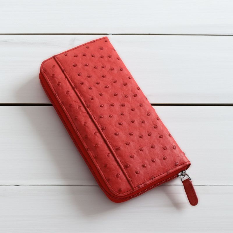 柔らかくて丈夫な本革、オーストリッチをハーフポイントで使用した長財布です。