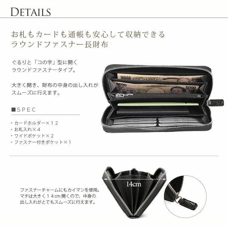 他の画像を見る exotic leather カイマン 長財布 ラウンド ファスナー シャイニング 加工 シルバー 金具 / レディース 4FA ¥ 18,700 税込 3.67 (3件) お気に入りに登録する