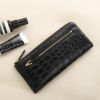 『皮革の宝石』と称される ナイルクロコダイルの革を使用しています。 数あるワニ革の中でも 高い人気を誇るエキゾチックレザーです。 表面には上品な雰囲気の マット加工を施しており、 使い込むほどに味わい深くなる 経年変化も楽しめます。 スリムな見ためですが、 紙幣・小銭・カードが 充分に入る収納力です。 外側のL字ファスナーを開けるだけで 財布の中身がすべて見えるので とても使いやすく、 お会計もスムーズに行えます。 内側の一番の特徴は、 ファスナーのない小銭入れ。 ファスナーをなくすことで お財布自体がスリムになり、 お会計にかかる時間も短縮されます。 小銭入れはしっかりと高さがあるので、 L字ファスナーを閉めれば 中身が飛び出す心配もありません。 クロコダイルの高級感を引き立てる、 ゴールドカラーのファスナーを使用しています。 ファスナーチャームにもクロコダイルを使用し、 細部までこだわったデザインになっています。