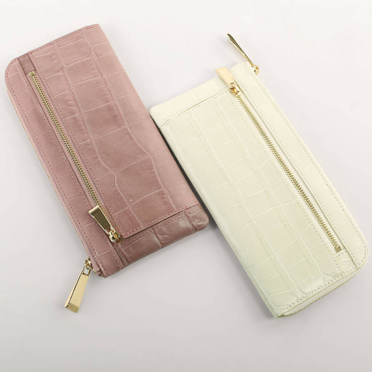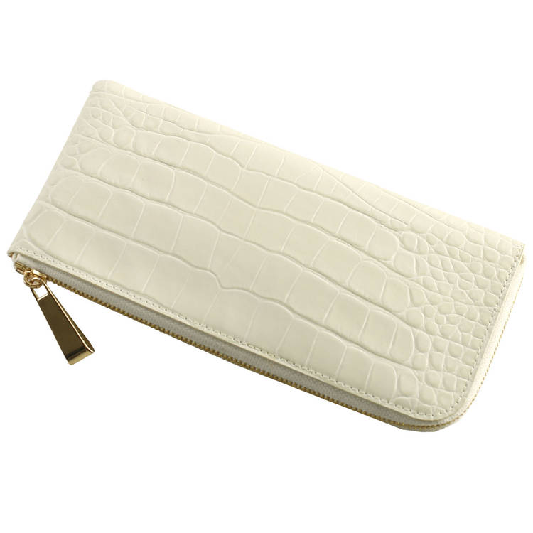 【訳あり】L字ファスナー 長財布 薄型 レディース 牛革 ブランド ノーブランド クロコダイル型押し レザー アウトポケット 軽やか すっきり 使いやすい