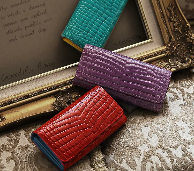 天然皮革 エキゾチックレザー クロコダイル 長財布 レディース 本革 シャイニング加工 センター取り バイカラー 内側牛革 ヘンローン かぶせ フラップ 財布 多機能 財布 安心 保証書 付き 女性ギフト 春財布 ギフト