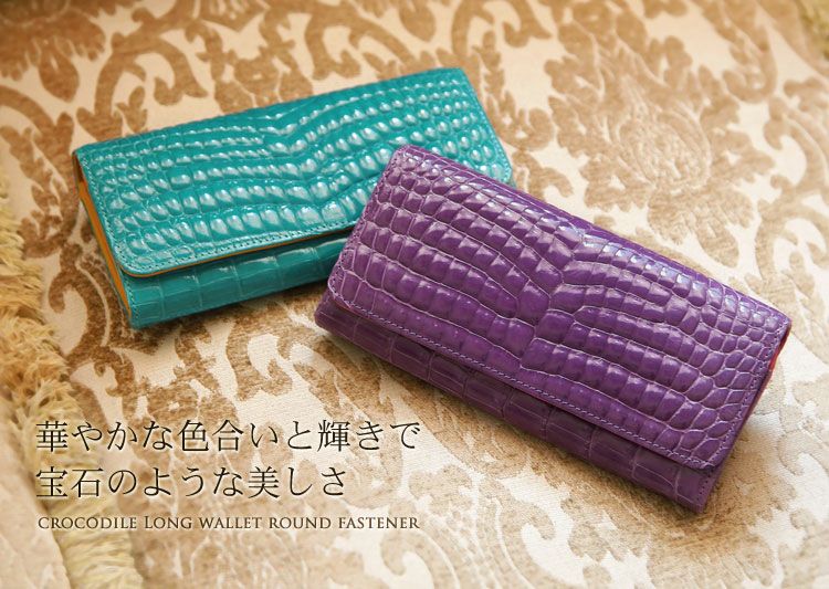 | 商品名:クロコダイル 長財布 シャイニング加工 センター取り バイカラー / レディース |