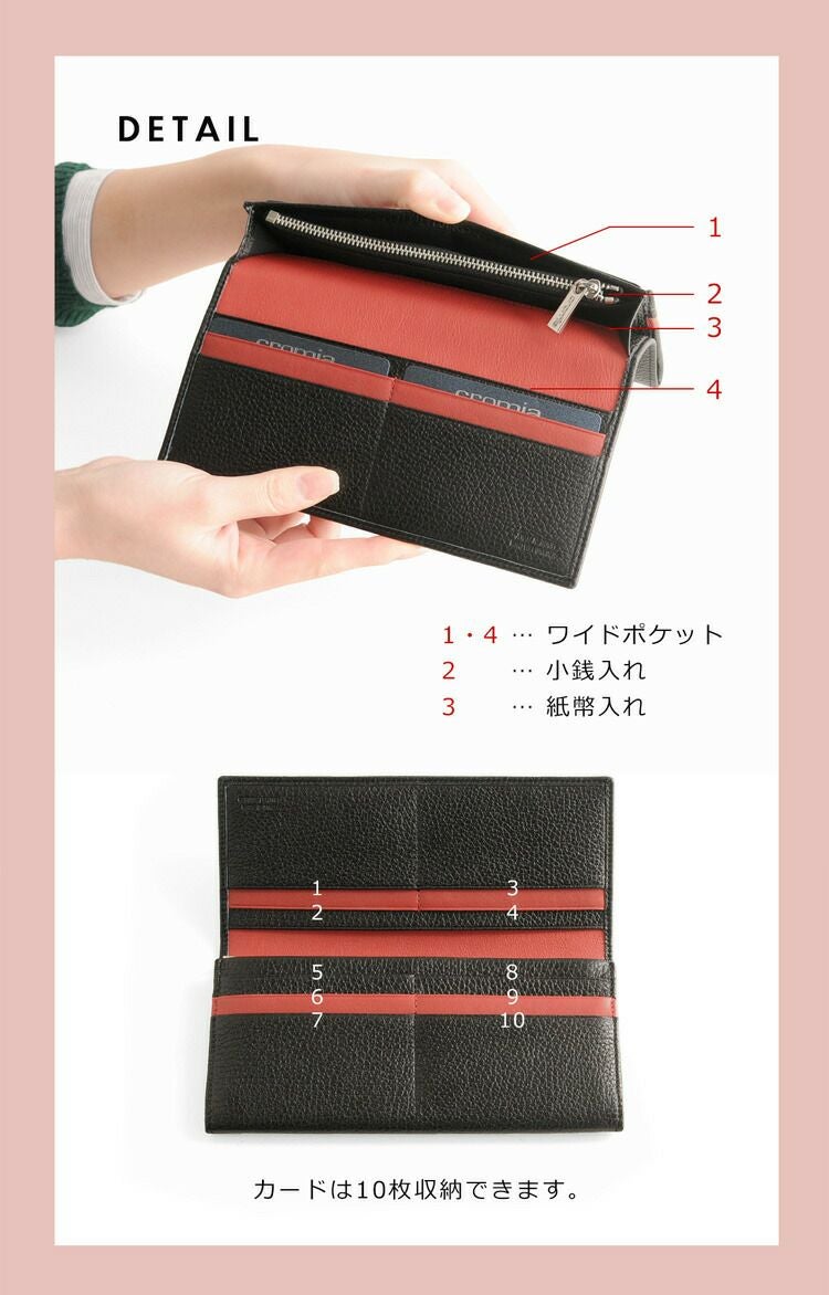 | 内側収納 | 小銭入れ×1 紙幣入れ×1 カードホルダー×10 ワイドポケット×2 |
