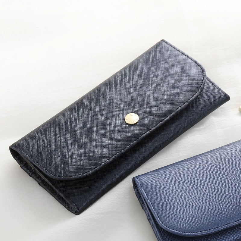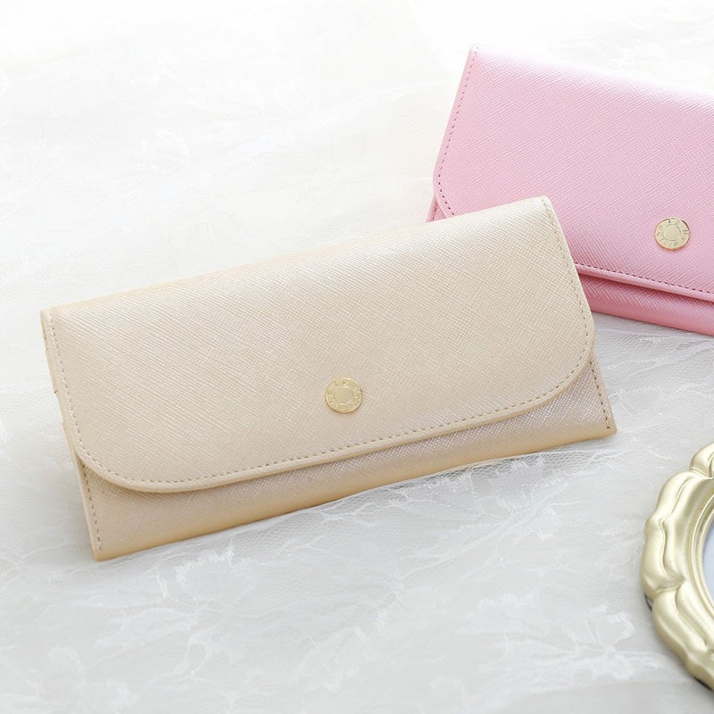 女性の手に馴染むように設計されたスリムなかぶせ長財布。