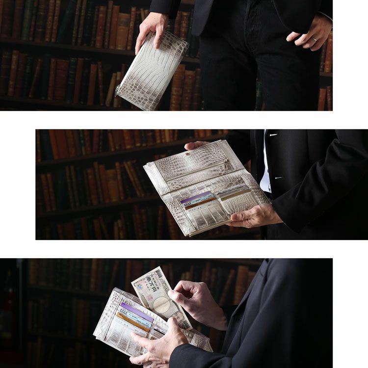 他の画像を見る exotic leather クロコダイル 長財布 センター取り 一枚革 無双 日本製 メタリック 目地染め 変わり染め JRA 4FC ¥ 96,800 税込 (0件) お気に入りに登録する