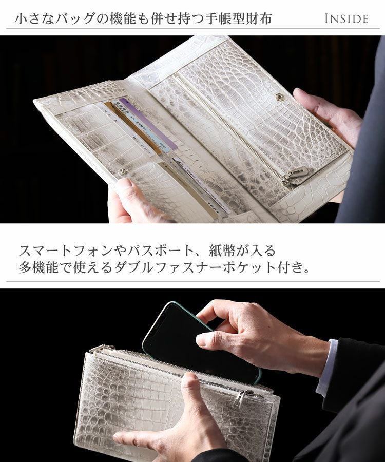 商品名:ヒマラヤ クロコダイル ダブルファスナー 長財布 レディース センター取り 一枚革 大きい 手帳型 クラッチバッグ