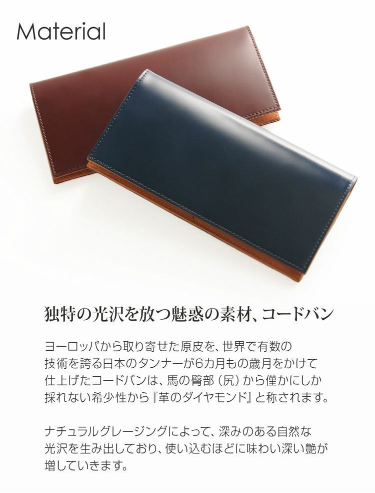 男性だけでなく女性からも圧倒的に支持されるコードバンの二つ折長財布。