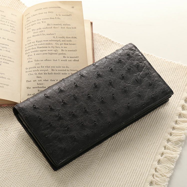 お札やカードをスマートに持ち運ぶ、オーストリッチの長財布です。