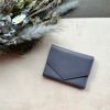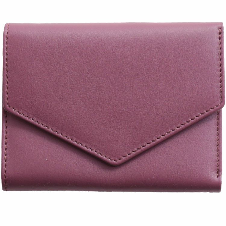 三角のフラップデザインがすっきりとした印象を与えるコンパクト財布。