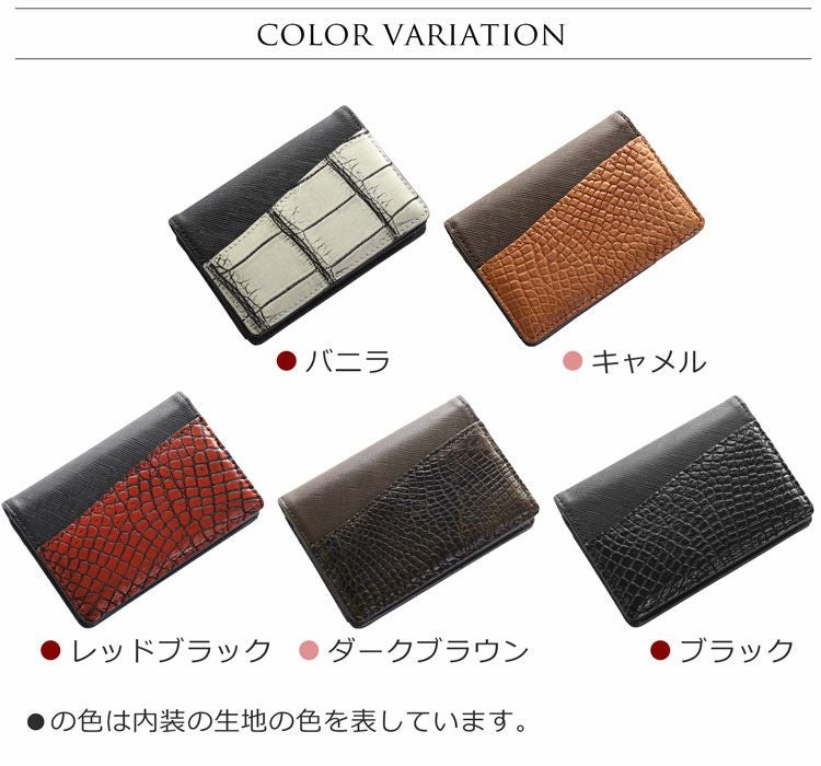 ナイルクロコダイルと牛革のコンビネーションデザイン名刺入れ。