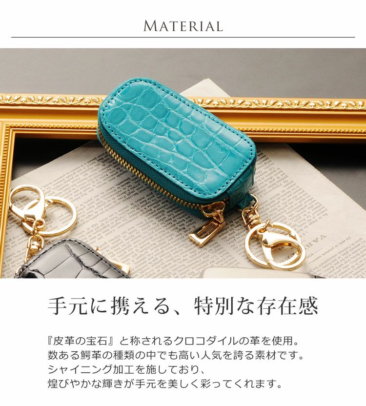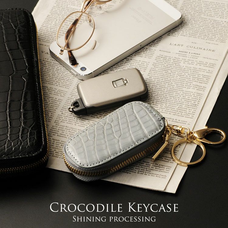 天然皮革 エキゾチックレザー クロコダイル スマート キーケース シャイニング加工/ヘンローン社製原皮使用/レディース キーホルダー シャイニングクロコダイル 革小物 レザーアイテム グレージング送料無料 ギフト プレゼント