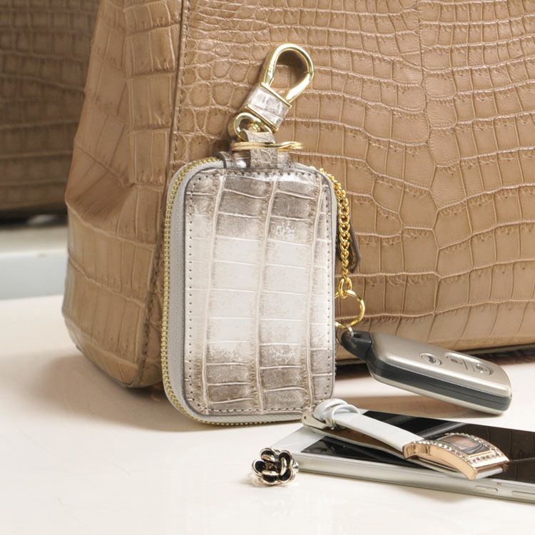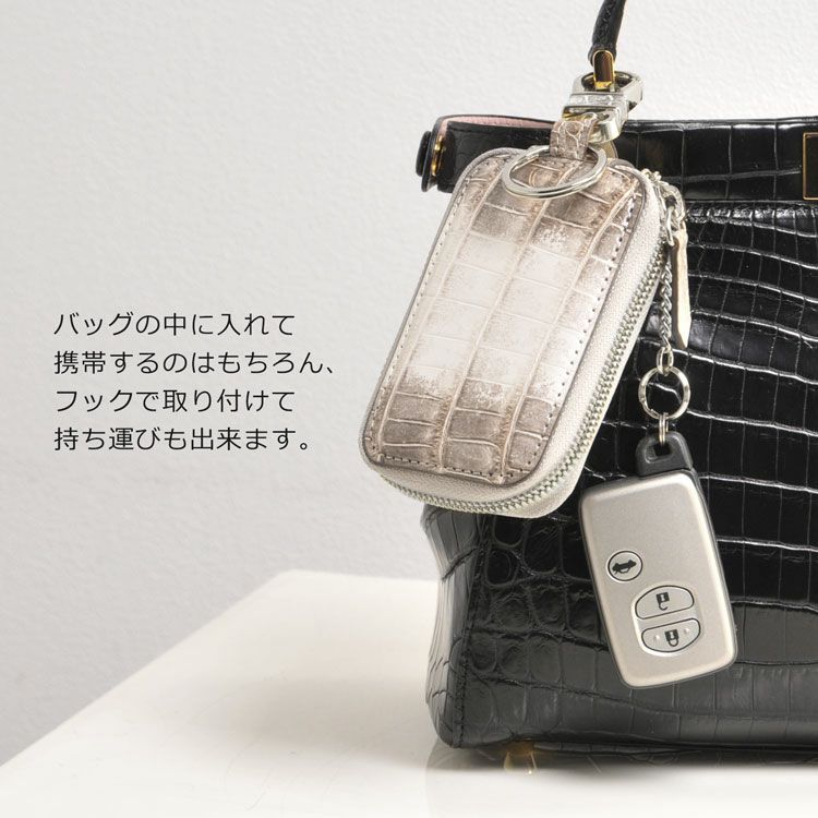 天然皮革 エキゾチックレザー ヒマラヤ クロコダイル スマート キーケース レディース シャイニング加工 ゴールド金具 シルバー金具 本革 レザー 贈り物 プレゼント ホワイト 白 ギフト