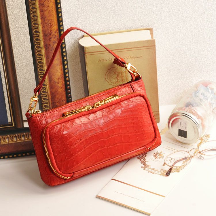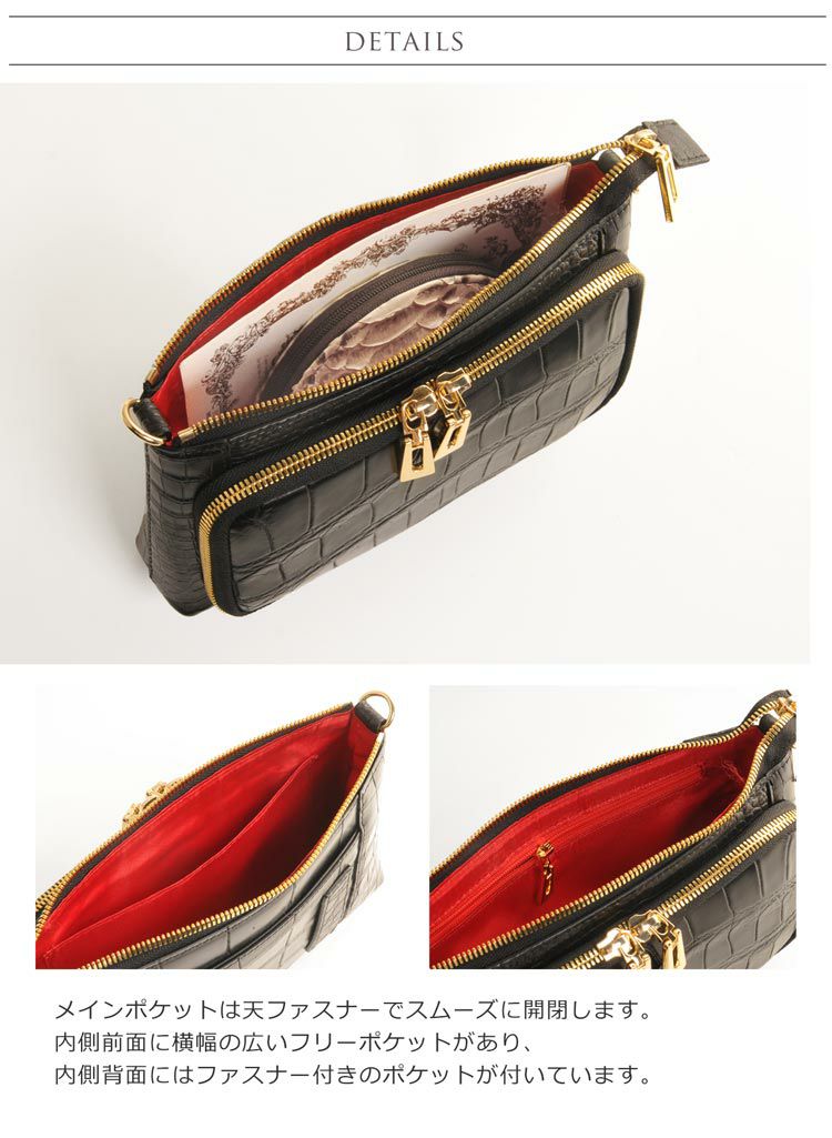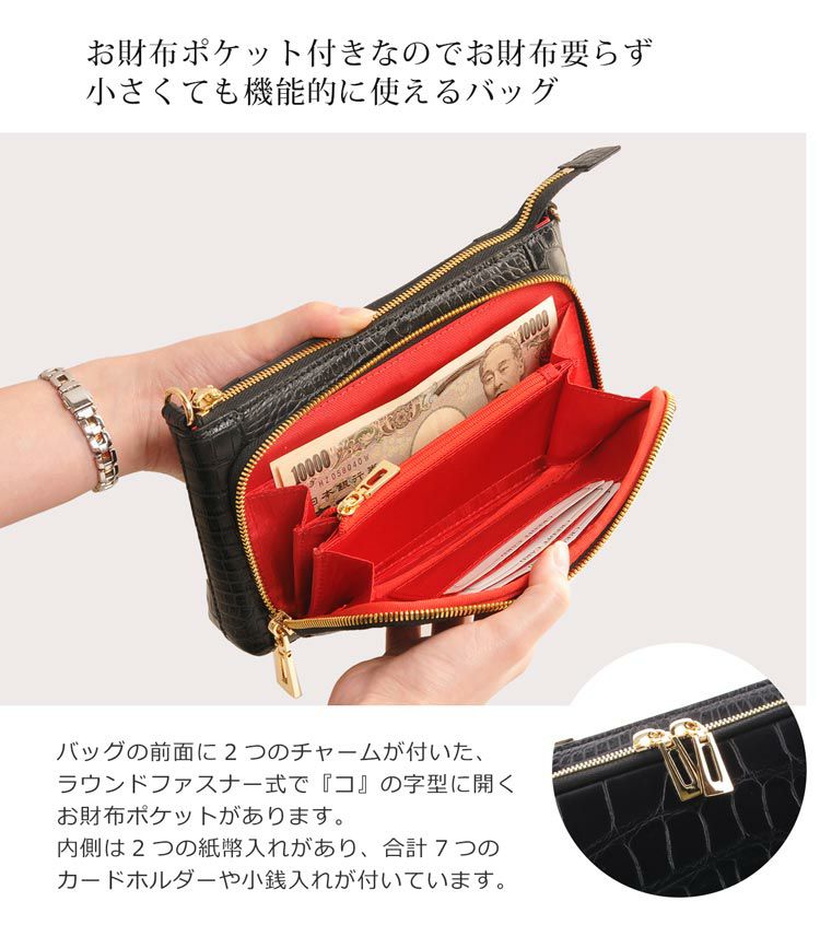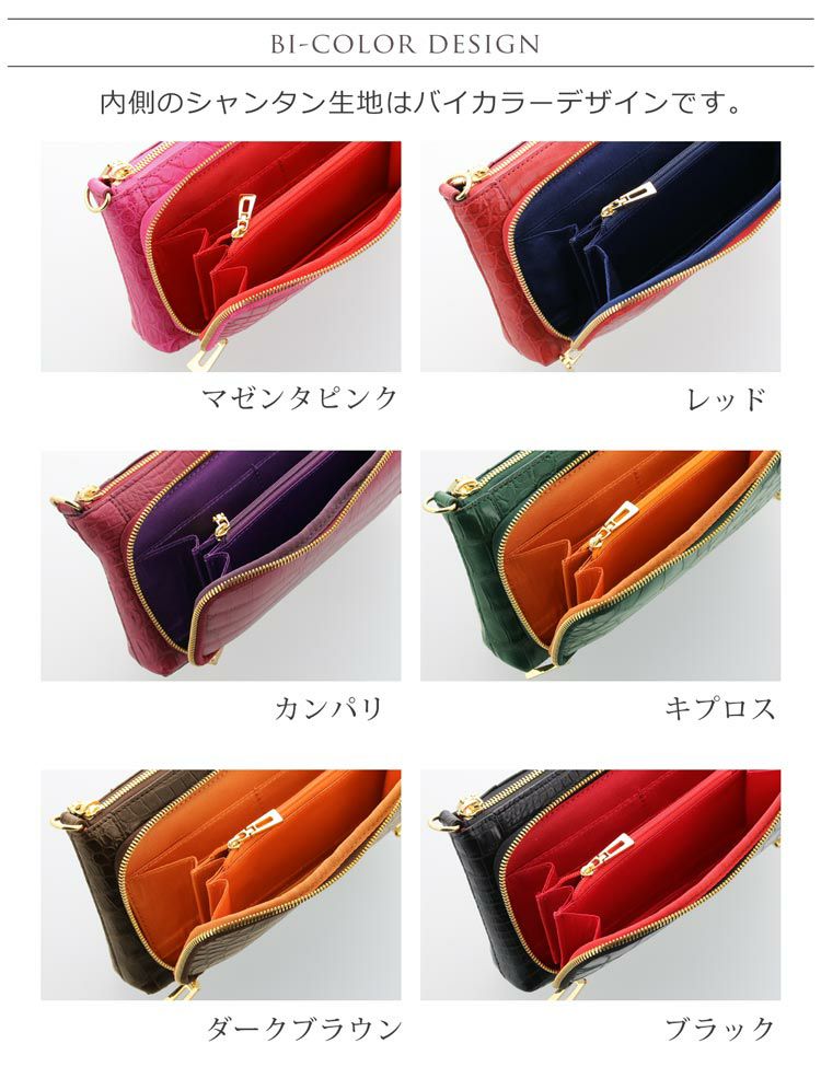 天然皮革 エキゾチックレザー クロコダイル 4WAY バッグ マット加工 内側 バイカラー ゴールド ファスナー レディース ショルダーバッグ 小さめ お財布ポシェット 全6色 お財布バッグ フォーマル プレゼント ギフト ladiesbag mensbag