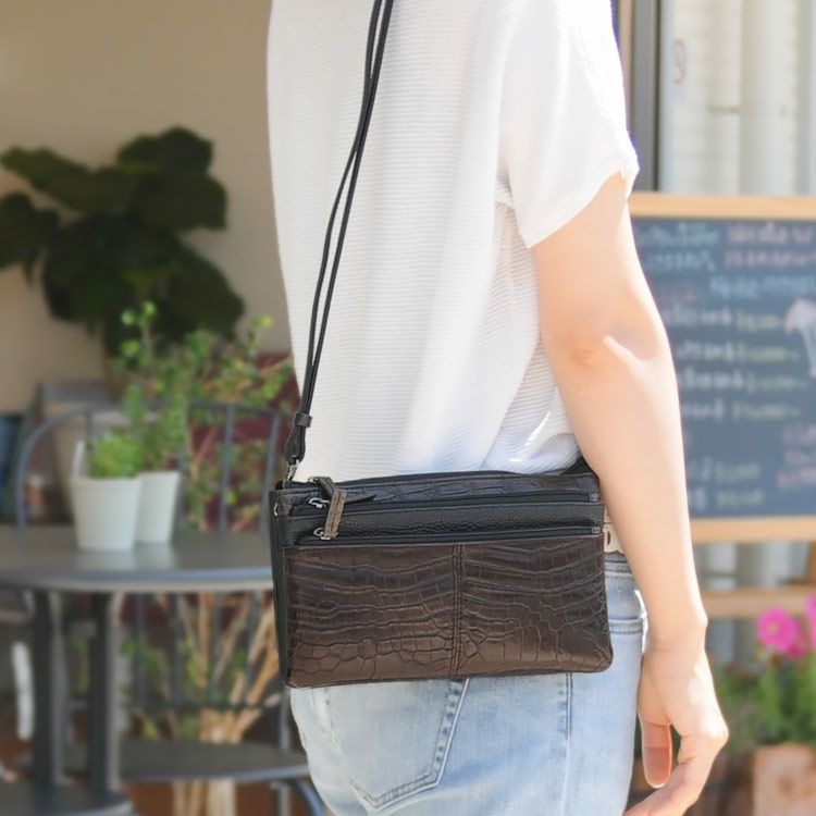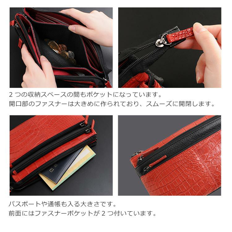 | 商品名:クロコダイル ミニバッグ マット加工 3WAY お財布 ショルダー ポシェット イタリア製 多機能 全6色 |
