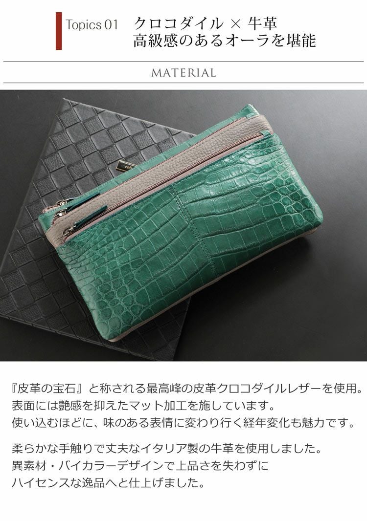 | 素材 | 表側:クロコダイル、牛革 内装:生地、一部本革 |